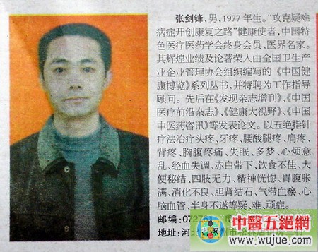 張劍鋒被科技信息報推薦為全國首屆民間優秀中醫
