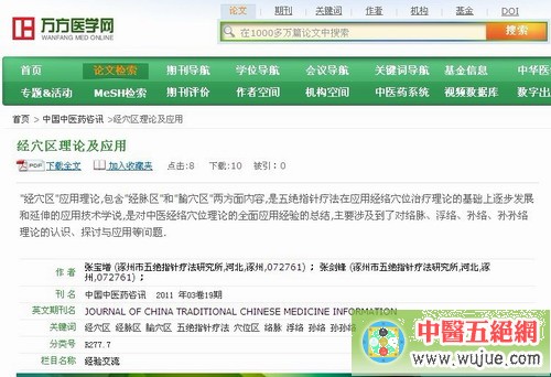 “經(jīng)穴區(qū)理論及應(yīng)用”在萬方醫(yī)學(xué)網(wǎng)檢索結(jié)果