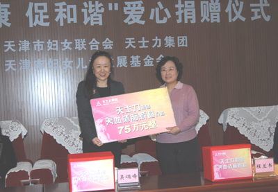 “三八”國際勞動(dòng)女節(jié)即將來臨,為了使廣大婦女姐妹在節(jié)日里感受到社會(huì)的溫暖與關(guān)愛,共建共享地和諧社會(huì),天津天士力醫(yī)藥營銷集團(tuán)有限公司向市婦聯(lián)、天津市婦女兒童發(fā)展基金會(huì)捐贈(zèng)價(jià)值75萬元的藥品,通過基金會(huì)發(fā)放給各行各業(yè)的婦女姐妹,并免費(fèi)舉辦多種類型的健康講座,傳播健康理念和保健知識(shí),以實(shí)際行動(dòng)關(guān)愛婦女,促進(jìn)和諧。2008年2月28日下午2:30在天士力集團(tuán)二樓會(huì)議廳舉行了愛心捐贈(zèng)儀式。市婦聯(lián)副主席程書蘭,市婦聯(lián)副局級(jí)巡視員、市婦女兒童發(fā)展基金會(huì)負(fù)責(zé)人馬金萍,天士力集團(tuán)副總裁、天士力醫(yī)藥營銷集團(tuán)有限公司董事長(zhǎng)吳逎峰,天士力醫(yī)藥營銷集團(tuán)有限公司健康服務(wù)分公司總經(jīng)理姜祝平等領(lǐng)導(dǎo)出席了捐贈(zèng)儀式。